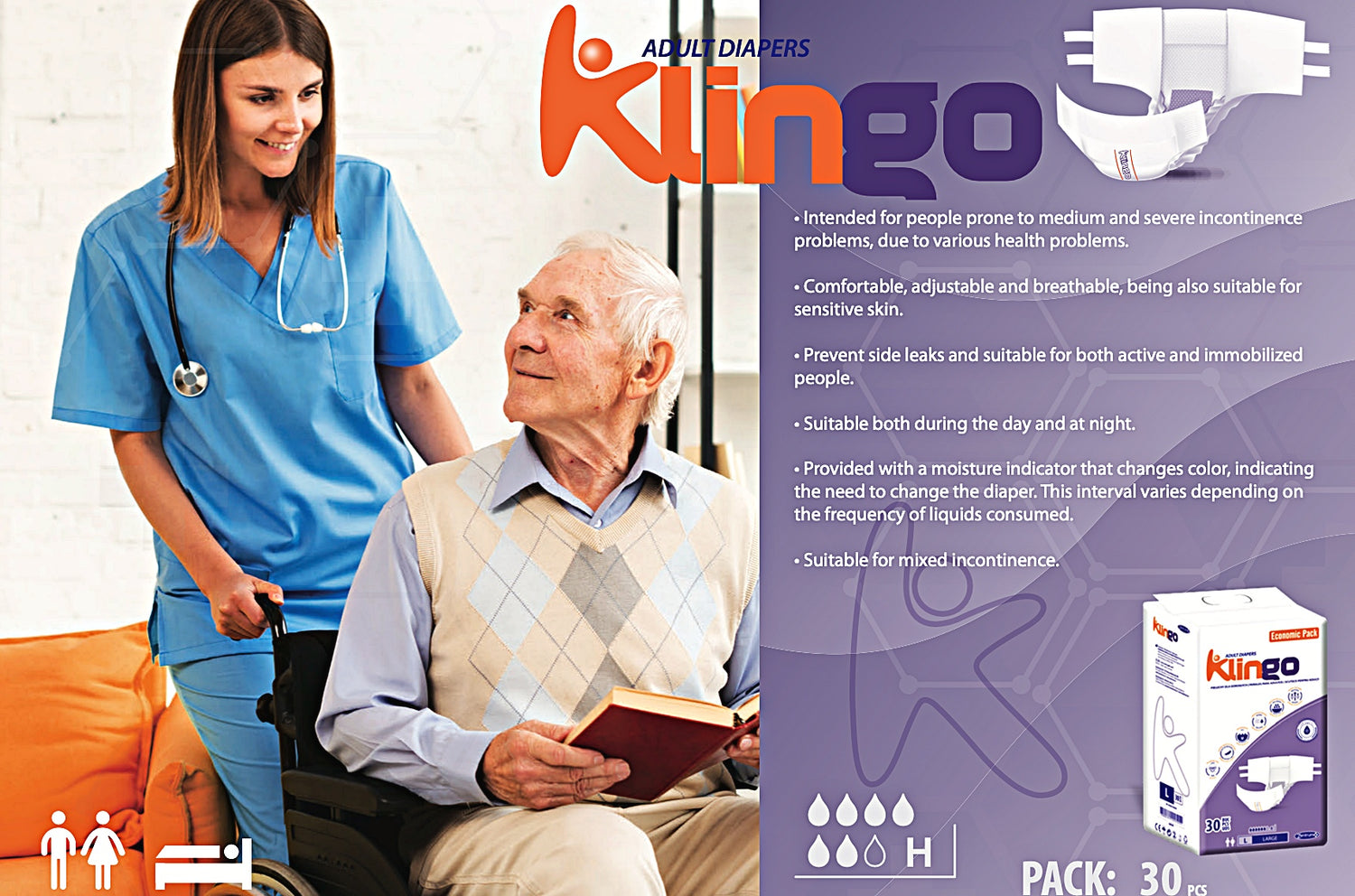 Scutece Adulți Klingo Economic Pack, Mărimea M, Pachet Promo 2x30 Bucăți