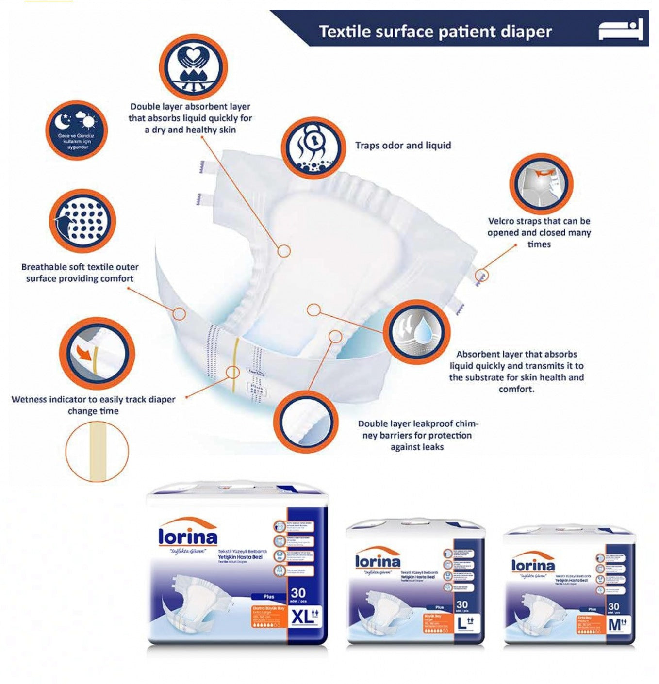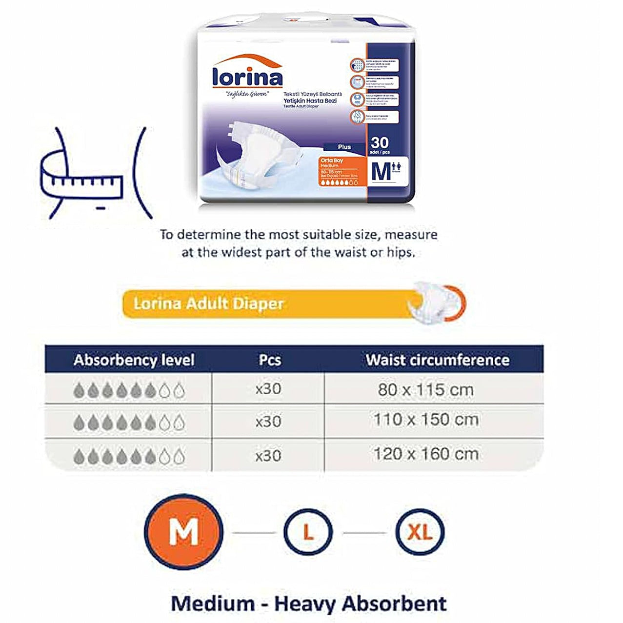 Scutece Absorbante LORINA Adult, pentru Incontinență Urinară, Mărimea M - Pachet 30 Bucăți