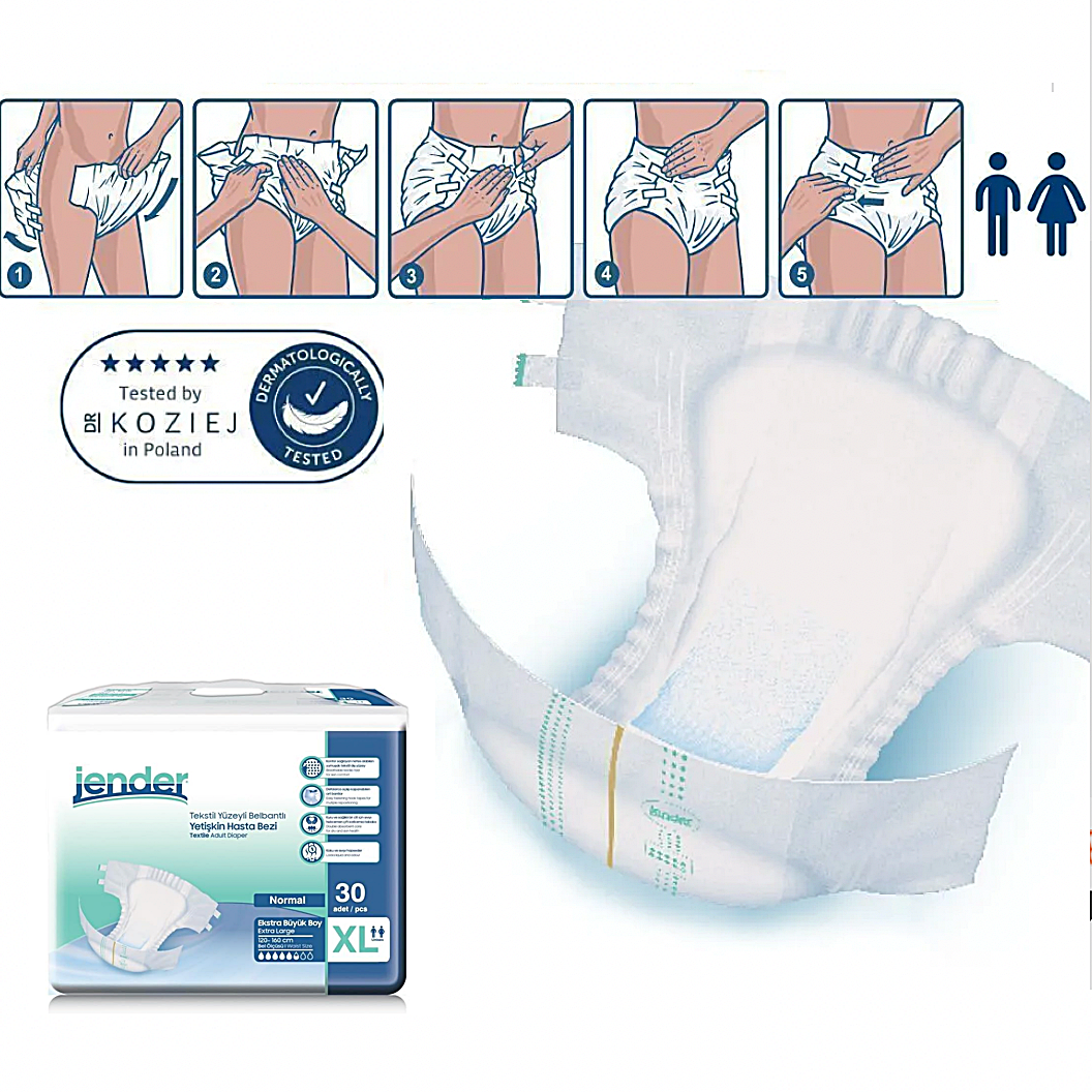 Asigură protecție și confort maxim cu scutecele pentru adulți Jender, mărimea L. Pachetul promoțional conține 90 de bucăți (3 pachete x 30 buc), fiind ideal pentru persoanele cu incontinență moderată sau severă. Fixare sigură, protecție anti-scurgeri și confort pe tot parcursul zilei. Alege calitatea la un preț avantajos!