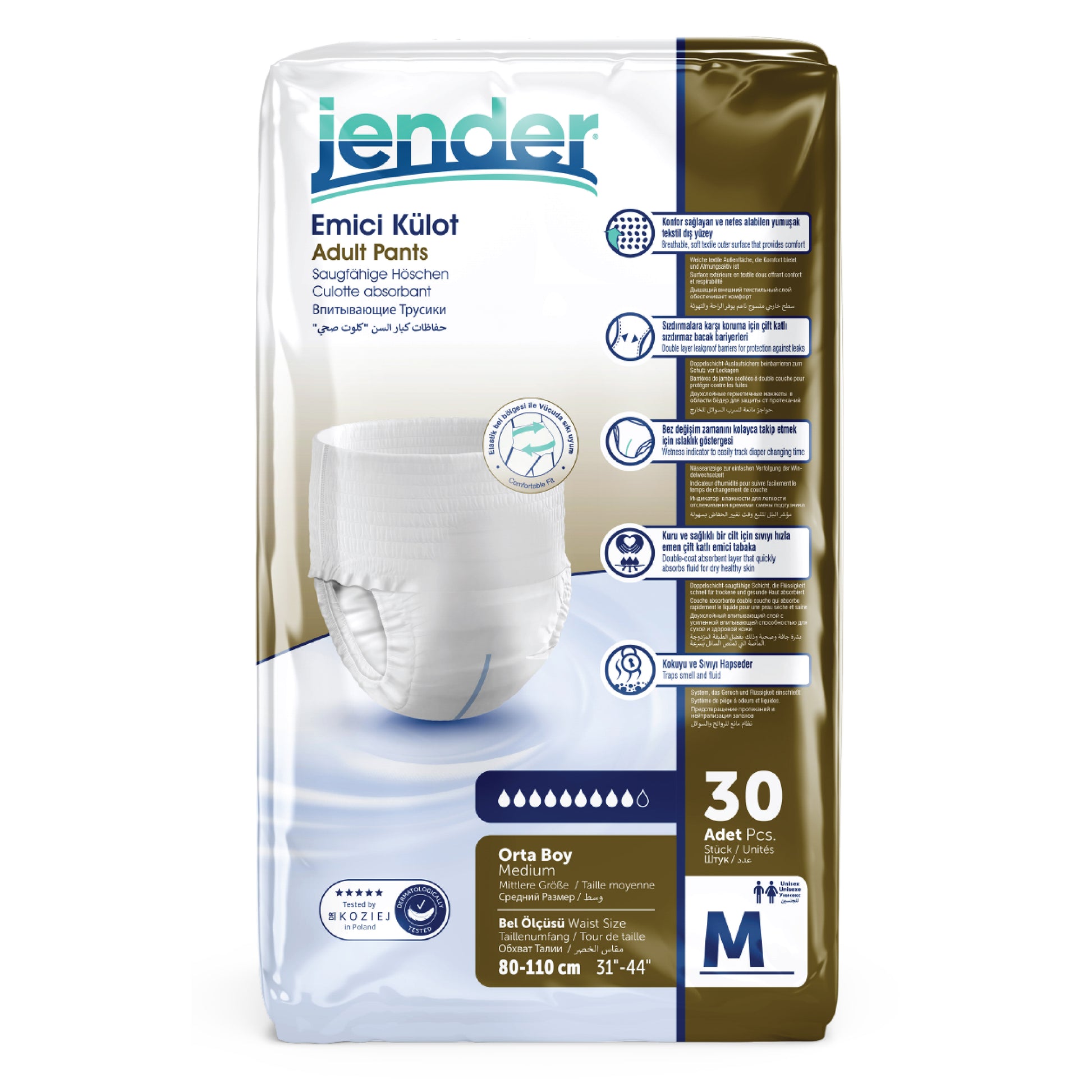 Descoperă scutecele tip chilot pentru adulți Jender, ideale pentru persoanele cu incontinență moderată sau severă. Oferă confort sporit, fixare sigură și protecție împotriva scurgerilor. Mărimea M este potrivită pentru circumferințe medii, iar pachetul conține 30 de bucăți. Alege siguranța și discreția în fiecare zi!